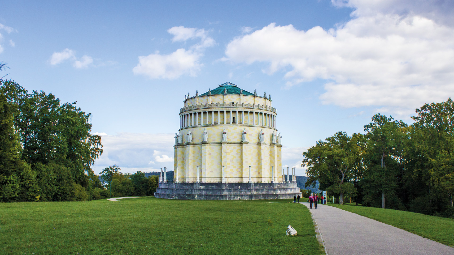 Der dreistufige Bau besteht aus Kalkstein. An der Außenfassade thronen ringsherum 18 Statuen, die für die an den Schlachten beteiligten deutschen Volksstämme stehen sollen. Die Zahl 18 repräsentiert außerdem das Datum der Völkerschlacht bei Leipzig (18. Oktober 1813) sowie die Schlacht bei Waterloo (18. Juni 1815).