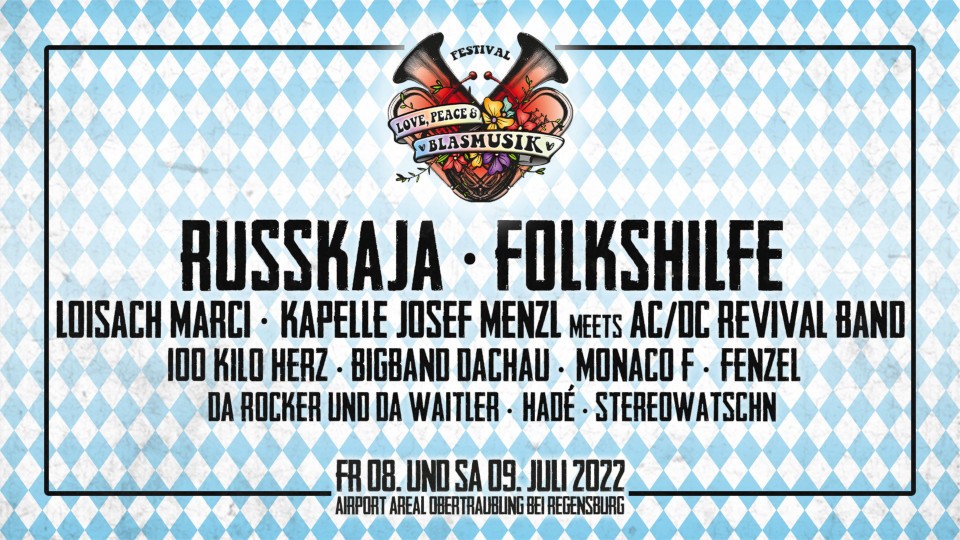 Unser Love, Peace & Blasmusik Festival geht in die dritte Runde. Nach dem großen Erfolg bei der Premiere 2018, der Zweitauflage 2019 und der 2,5 letztes Jahr freuen wir uns sehr mit euch 2022 weiterzufeiern. Das Motto Love, Peace & Blasmusik steht für Hippie Lebensgefühl gepaart mit pulsierender Livemusik der angesagtesten Blasmusik-Kombos. Musikalisch bewegen wir uns in verschiedenen Genres wie klassische Blaskapellenmusik, Hip-Hop, Elektro, Funk, Gitarrenpop, Ska...usw.