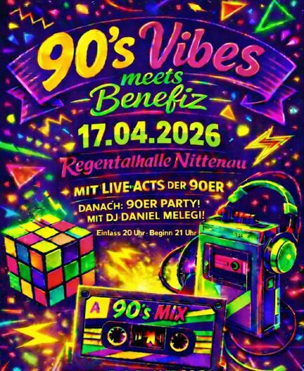 Wir holen die 90er zurück in die Regentalhalle Nittenau! Tanzen, Singen, Erinnerungen aufleben lassen! Freut Euch auf Live-Acts wie den Freestylemusic Artist THE OFFICER ("Cry"), the Greatest Hits von Captain Hollywood Project ("More & More") sowie Special Guest Beatrix Delgardo von MASTERBOY ("Feel the Heat of the Night"). Feiert im Anschluss zu Eurodance Party mit DJ Daniel Melegi. Mit dem Kauf eines Tickets unterstützt du außerdem den Hospizdienst Nittenau und trägst dazu bei, diesen besonderen Abend möglich zu machen.